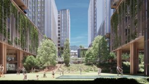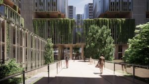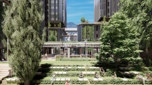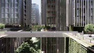 Projekti përfaqëson një lagje urbane multifunksionale, të vetëqëndrueshme dhe pa qarkullim automjetesh mbi tokë, duke kombinuar banim, zyra, shërbime tregtare, hapësira publike dhe gjelbërim të integruar.