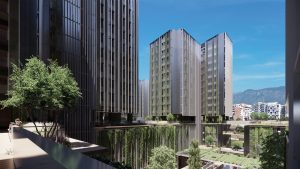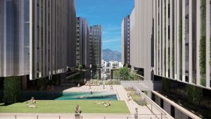- Platformë e gjelbëruar në katin +5 (park komunitar me shtigje, zona pushimi, aktivitete për fëmijë, fitness të lehtë).