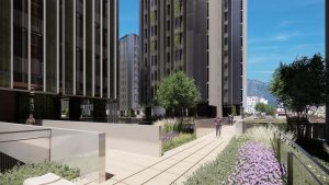 - Faza I – 5 ndërtesa, 14–19 kate, 63,259 m² ndërtim + 36,245 m² parkim nëntokësor